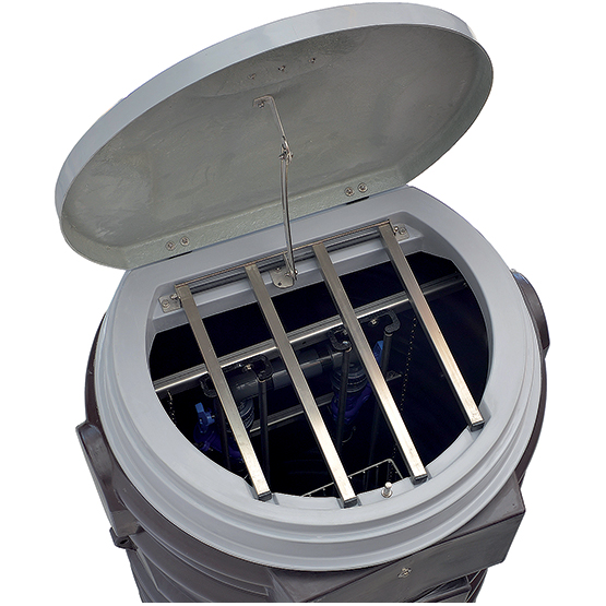 - Couvercle en PEHD (fibre polyester avec barres anti chute en option)